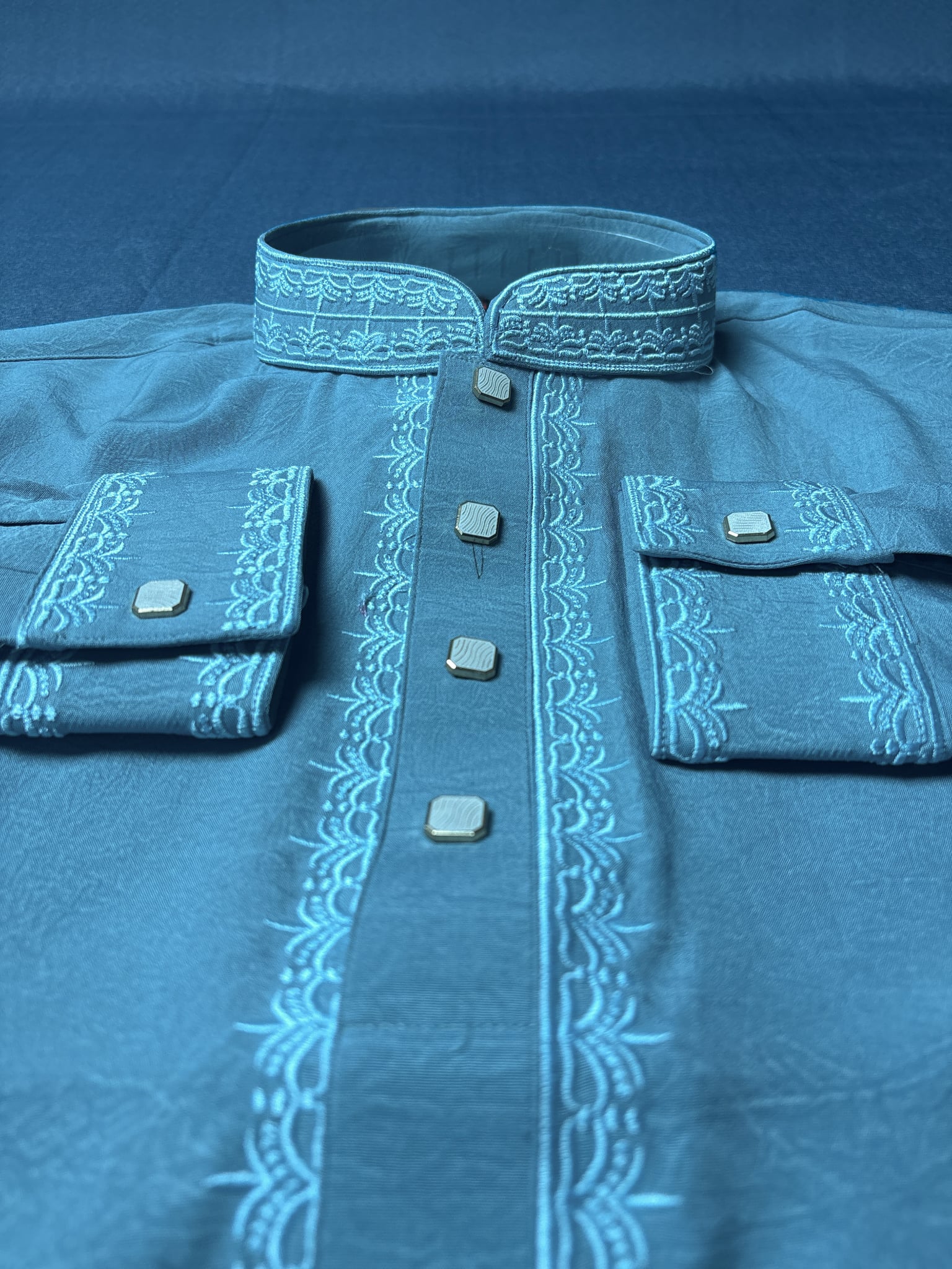 Elegant Mint Blue China Vangchur Stice Fabric Panjabi